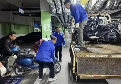 行动中,工作人员逐区域、逐车位进行细致巡查,对于占用消防通道、堵塞应急出口的电动车,先通过业主群、电话联系车主,告知其违规情况并劝导挪车,对于无法联系或车主短期内不能到场的,工作人员现场拍照记录,由清运组将车辆转移至地库指定临时存放点,并在原停放位置张贴提示条,方便车主后续认领。此次行动中,共排查出违规停放电动车24辆,引导车主自行规整车辆19辆。