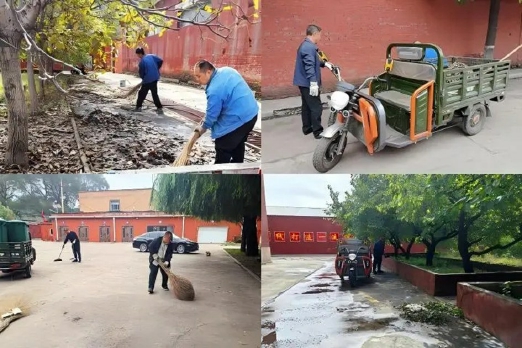 清理现场,大家分工明确、协作高效,仔细清扫路面落叶,将一片片落叶归拢成堆;随后驾驶电动三轮车转运落叶,确保清理出的落叶及时被运走。他们不放过任何卫生死角,对马路两侧、树木周边及库区角落等重点区域认真作业,有效恢复了辖区的环境面貌。