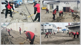 活动现场,身穿红色“志愿者”马甲的党员们分工明确、干劲十足。在工业广场区域,志愿者们手持扫帚、铁锹等工具,对广场内的杂物、积尘以及轨道周边的垃圾等进行“拉网式”清扫,大家不怕脏、不怕累,仔细清理着每一处卫生死角,让工业广场的面貌焕然一新。与此同时,针对运输区大院门口存在的坑洼路面,志愿者们默契配合,对破损路段进行了填补、平整,消除了道路安全隐患。