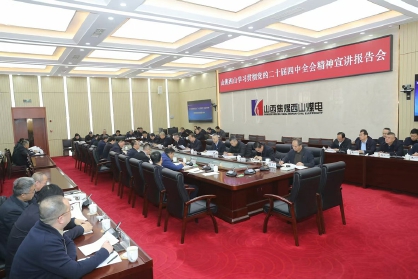 根据山西焦煤党委统一安排,12月25日,西山煤电党委召开学习贯彻党的二十届四中全会精神宣讲报告会(见图)。山西焦煤党委讲师团成员、西山煤电党委书记、董事长王晓东作宣讲报告。公司领导,专业技术委员会副主任,机关部门、中心、事业部及相关单位负责人参加。
