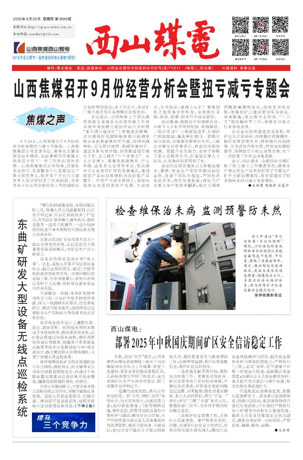 山西焦煤召开9月份经营分析会暨扭亏减…