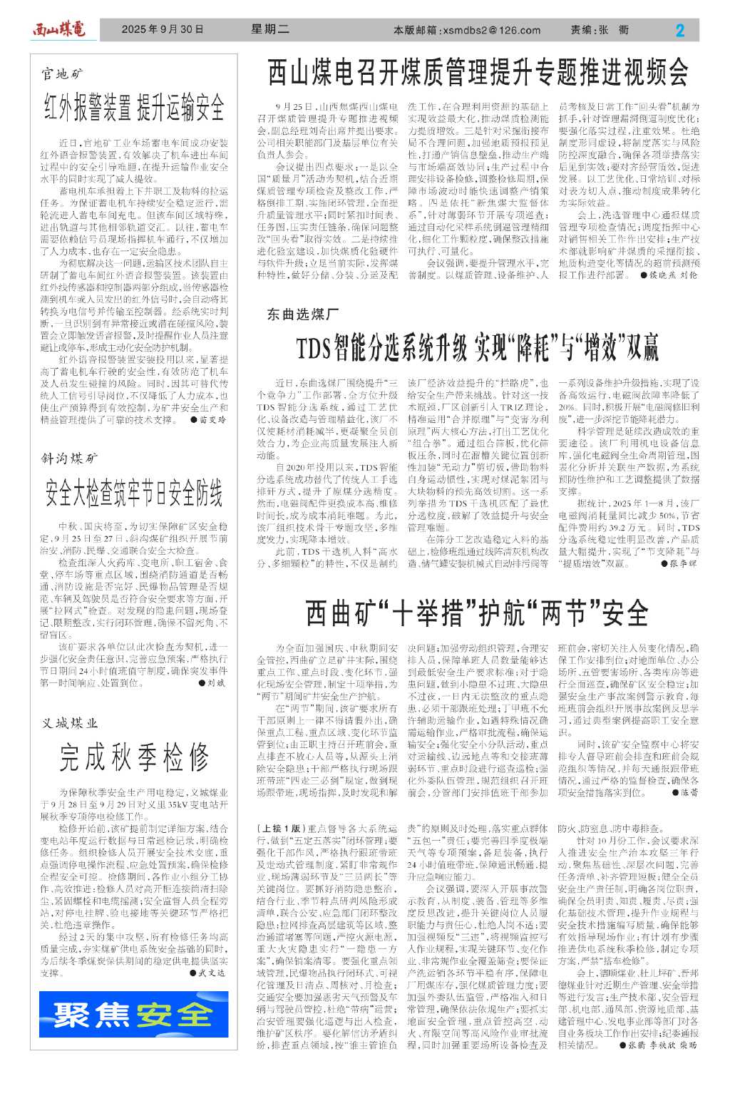 西曲矿“十举措”护航“两节”安全